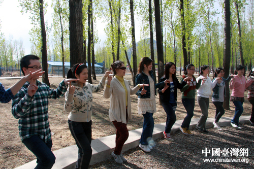 拓展训练开场前的热身项目“抓手指”。(中国台湾网 于斯文 摄)