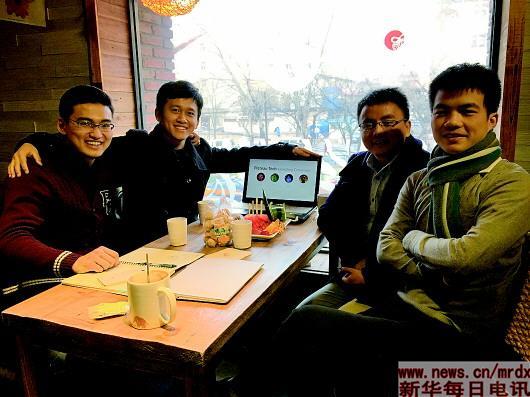 祖力亚尔(左一)和他的3位创业伙伴,其中有人放弃了支付宝提供的高薪工作加入他们的创业团队。