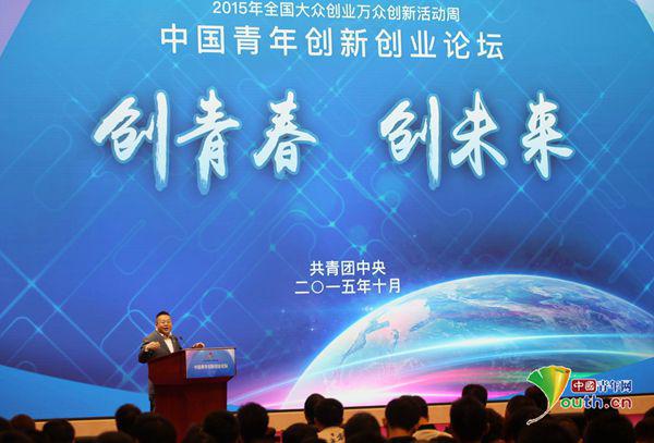 易鹏在创新创业论坛上带来精彩的主题演讲,赢得全场青年阵阵掌声。 中国青年网记者 李延兵 摄