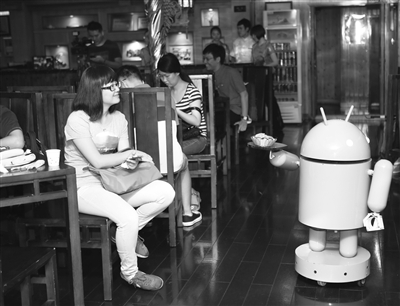图为广州博斯特公司机器人在珠江游船上为旅客提供服务,该公司正筹建全球首个聚合旅游、购物和教育为一体的机器人体验中心。 本报记者 郑 杨摄