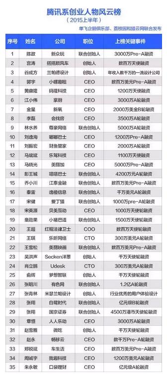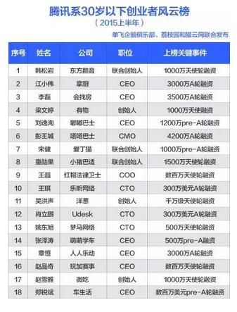 《腾讯系30岁以下创业者风云榜(2015上半年)》