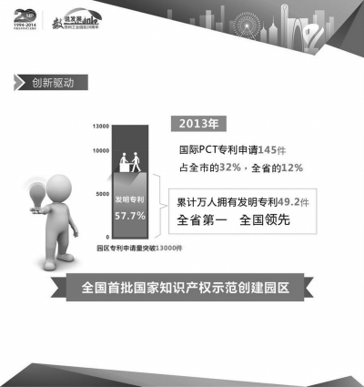 在这些创新载体促动下,园区每年新增科技项目约500个,拥有各类研发机构356个、国家高新技术企业568家;专利申请年均增长50%,其中发明专利占比约50%,万人有效发明专利拥有量超40件,上市公司总数达11家。
