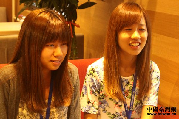在创业大街实习的两位台湾大学生讲解自己的收获(中国台湾网 陈文韬 摄)