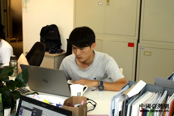 台湾大学生洪德麟正在工作中(中国台湾网 陈文韬 摄)