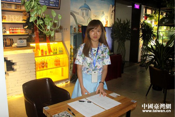 台湾大学生潘俐晔在一次活动中负责签到和布置会场(中国台湾网 陈文韬 摄)