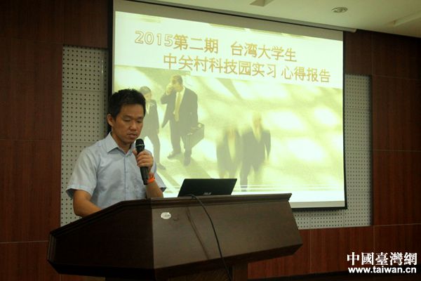 中国台湾网8月21日北京讯 (记者 陈文韬)“台湾有句话叫‘三分天注定,七分靠打拼,爱拼才会赢’,在北京中关村实习让我学到了,在工作中,甚至于在创业上面我们都应该有这样的坚持精神。”在中关村海置科创实习已有一个月的台湾青年洪德麟在活动总结会上说道。