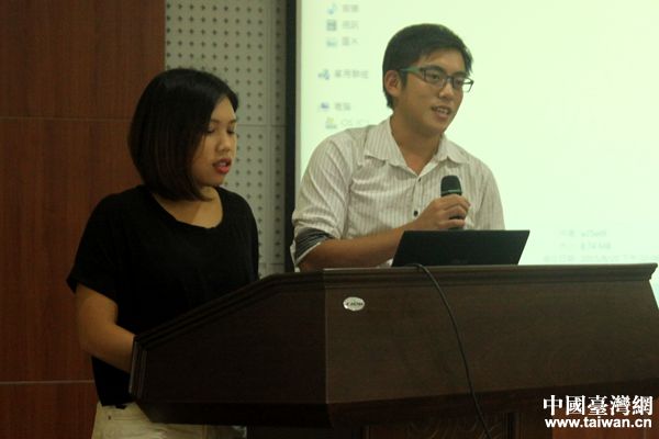 台湾学生黄昀等(京东实习)分享实习心得。(中国台湾网 陈文韬 摄)