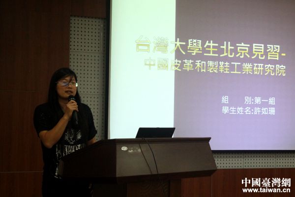 台湾学生许如珊(中国皮革和制鞋工业研究院实习)分享实习心得。(中国台湾网 陈文韬 摄)