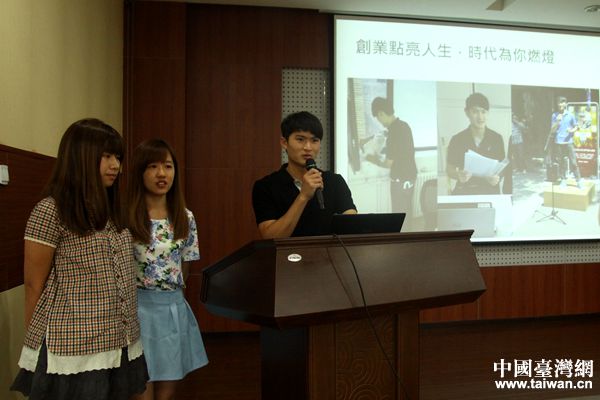 台湾学生洪德麟等(海置科创实习)分享实习心得。(中国台湾网 陈文韬 摄)