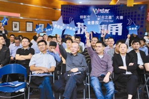 2015创业之星大赛的陪审团皆为投资人,图为陪审团投资人对项目进行投资邀约。南山区委宣传部供图