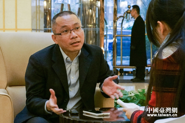 广东省东莞松山湖高新区管委会、台湾高科技园管理局副局长曾习接受记者专访。(中国台湾网 雍紫薇 摄)