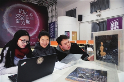据介绍,利用校内空间打造并于今年正式开放的众创空间分为三个层次。第一个层次是创业咖啡,这里与玑英青年创新公社合作,让学生能够互相交流,产生思维碰撞的火花,实现校内校外资源互通。“利用这个空间,12月26日联手大悦城举办了‘约见文创新力量’的展卖活动,将学生创意作品投入市场,接受检验。”马雨超介绍。