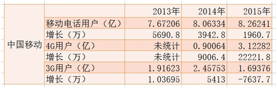 从2008年开始试商用,到2014年的全盛时期,用了长达6年时间,中移动的3G用户才达到规模顶峰,且只是堪堪接近2.5亿。而现在,它只用了2年多时间,4G用户就已经超过3亿大关。其中,仅2015年就超过2.2亿!
