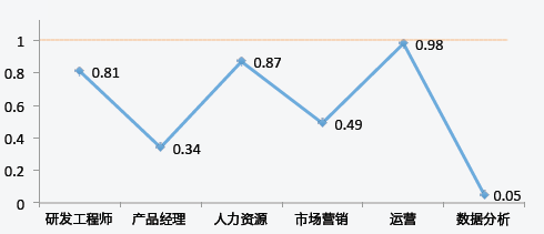 数据分析人才的供给指数最低,仅为0.05,这在一定程度上反映了行业现状,很多互联网公司都逐渐意识到了数据的重要性,但却缺乏相关的专业人才来分析和管理数据。