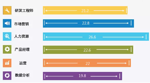 在互联网六大热门职位中,研发工程师人才的跳槽速度和转行速度都较快,职位流动性大。人力资源从业者的跳槽速度最慢,相对稳定很多。