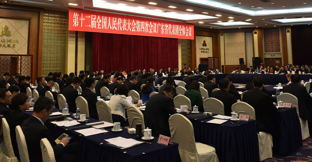 图:3月6日,十二届全国人大四次会议广东代表团全体会议向媒体开放\新华社