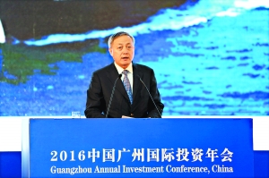 2016中国广州国际投资年会昨天上午在白云国际会议中心举行。在全体大会上,中船集团公司党组书记董强、南航集团党组书记谭万庚、唯品会董事长兼CEO沈亚、广发银行行长利明献、法国GL Events集团全球首席执行官奥利维·费兰多分别围绕“国际航运枢纽”、“国际航空枢纽”、“国际科技创新枢纽”、“现代金融服务体系”等广州经济发展路径作主题发言。