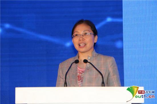 团中央书记处书记汪鸿雁在第三届“创青春”中国青年创新创业大赛启动仪式上致辞。中国青年网记者 李川 摄