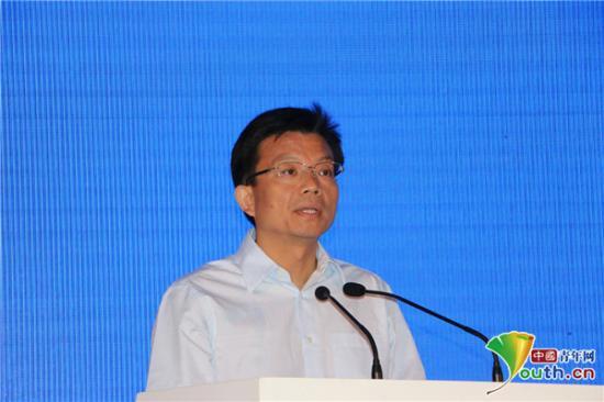 上海市副市长时光辉在第三届“创青春”中国青年创新创业大赛启动仪式上致辞。中国青年网记者 李川 摄