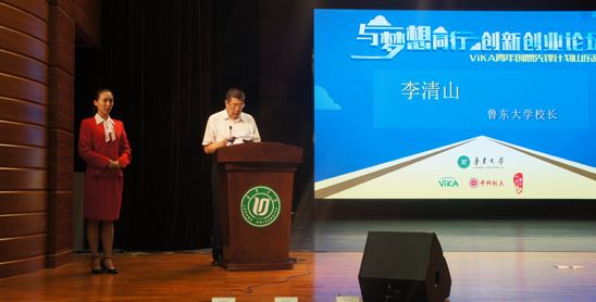 论坛开始前,李清山、衣军强、Ada以及中科创大创新创业教育研究院院长李肖鸣分别致辞。李清山在致辞中介绍了学校的基本情况和近来年开展创新创业工作的主要做法。他指出,本次“与梦想同行”创新创业论坛的举办,是鲁东大学与VIKA基金、中科招商、东方智慧战略合作的开端,是以市场化手段推动创新创业发展的积极探索,对深化高校与企业、地方之间合作,营造大学生创新创业的浓厚氛围,鼓励、帮助更多有意愿、有能力的青年学生打通创新创业的最后一公里,实现青春创新创业梦想的启航,让创客文化成为鲁东大学的鲜亮底色将产生重要推动作用。他希望广大青年创客以时不我待的机遇意识投身创新创业,以百折不挠的笃定信念拥抱创新创业,以开拓事业的理想追求倾情创新创业,为实现中华民族伟大复兴的中国梦贡献青春力量。