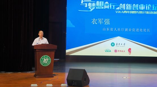 水母网6月29日讯(记者 林莎莎 牟腾飞) 6月28日下午,由北京常春助学慈善基金会ViKA公益基金主导发起,鲁东大学主办,中科创大创业教育投资管理有限公司和上海东方智慧十分孝心文化发展基金会共同承办的“与梦想同行”创新创业论坛暨ViKA青年创想先锋计划山东站活动在鲁东大学学术中心举行。中国第九城市董事长兼CEO朱骏,中科招商高级副总裁、中科创大创新创业教育研究院院长李肖鸣,中科招商执行副总裁、云投汇创始人董刚,北京常春助学慈善基金会秘书长万薇以及ViKA公益基金发起人Ada、Anida、Jenny等嘉宾参加论坛活动;山东省人力资源社会保障厅就业促进与失业保险处处长衣军强,烟台市劳动就业办公室主任王念瑞,中共烟台市芝罘区委常委、组织部部长、统战部部长姚云喜等领导应邀出席论坛活动。校长李清山、副校长丁瑞忠,机关相关部门负责同志,各学院党总支副书记、分管教学的副院长、辅导员及师生代表700余人参加了论坛活动。
