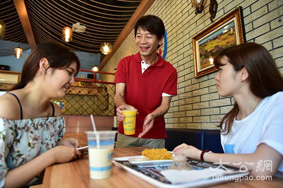 图:李儒钦(中)创办的“叶涩”创意餐饮连锁已有22家分店/大公报摄