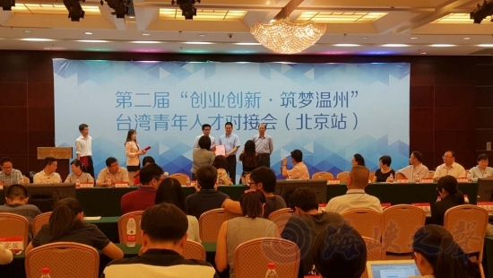 海峡之声网北京讯(记者杨娜)5月18日下午,由温州台湾青年创业就业服务中心举办的2016“创业创新 筑梦温州”台湾青年人才对接会在北京举办,活动吸引了150多位在京高校深造的台籍博士生、硕士等参加。