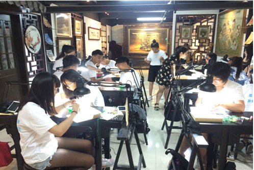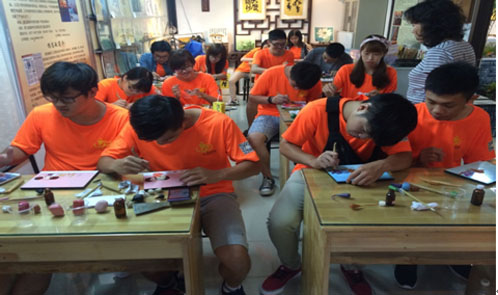 “体验温州发展 放飞创业梦想” 实习实践活动按计划进行。来自台湾的同学们认真的投入到第一阶段的学习中。他们被分成两组,在浙江创意园的工作室,分别跟随资深大师,进行瓯塑、瓯绣的学习体验。