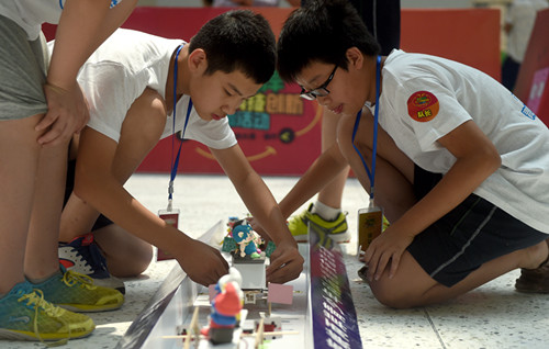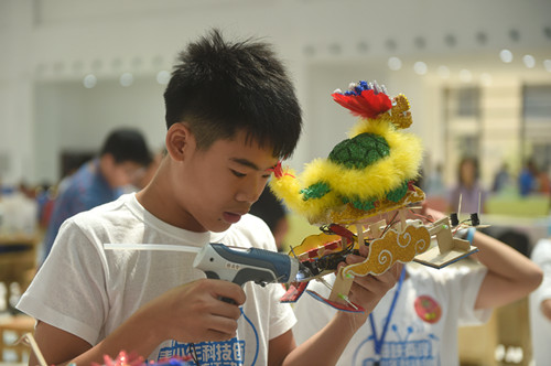 在Power Tech 交流赛中,参赛学生以团队形式出赛,赛巧手、秀创意、比合作,利用主办方统一提供的Power Tech材料包,发挥自己的想象,利用简单的机械构造,制作出模仿不同生物运动方式的机器人,再让这些机器人在不同的竞技场上一决高下。现场竞技以接力赛为初赛,以直线赛为半决赛,最终通过拔河赛决出冠亚季军。这项比赛在台湾已经开展10多年,不仅有助于青少年创意能力的培养和发挥,还能让他们在DIY创作的过程中培养“好思考、喜思考、乐创作、肯创作”的科学思维与习惯,从2014年开始,江苏学生也开始接触此项比赛并不断取得优异成绩。