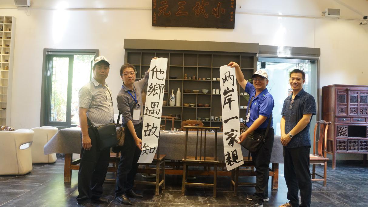 座谈会前,鄂苗两地青年朋友首先共同参观了汉阳造文化创意产业园,在汉阳会、汉艺空间、一熹艺术馆等场馆参观交流中,双方青年深入交流。台湾朋友对湖北的中华传统文化底蕴和文化创意产业发展给予了高度评价,参观中,台湾朋友合书“两岸一家亲、他乡遇故知”对联,表达本次参观的感受。