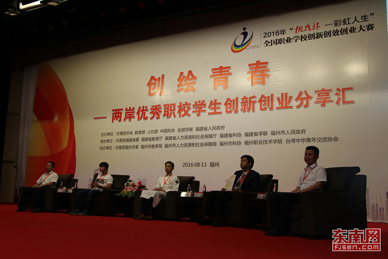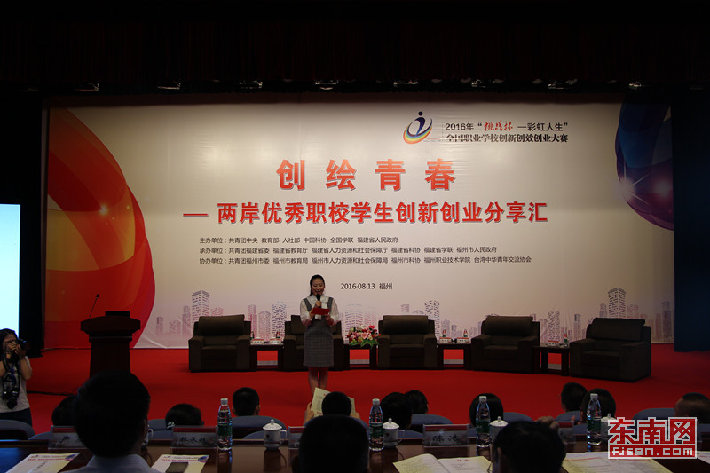 今日上午,2016年“挑战杯——彩虹人生”之“创绘青春——两岸优秀职校学生创新创业分享汇”在福州举行。