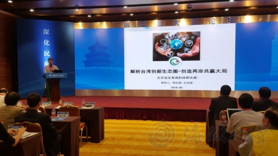 北京远见育成科技孵化器公司、北京台湾青年创业基地总经理陈冠融,上海市政协委员、台盟上海市委委员陈乐等分别围绕论坛主题,就两岸青年创业趋势、两岸创业共赢发展现状、青年女性创业、台湾青年成长成才等专题进行了交流和专题演讲。陈冠融表示,作为台湾的上市公司已经北京经营了26年,在两岸累积了深厚的产业资源,他希望可以给来大陆创业或就业的台湾青年提供最直接的支持和帮助。说:“我们在大陆已经26年了,企业由无到有,知道创业者的艰辛。每个创业者、每个创业公司在不同的阶段需要不同的资源,这些需求和资源新的创业者是不知道的,尤其是台湾来的。我们希望可以做一个经验的传承,为台湾的企业来大陆搭建一个桥梁。”