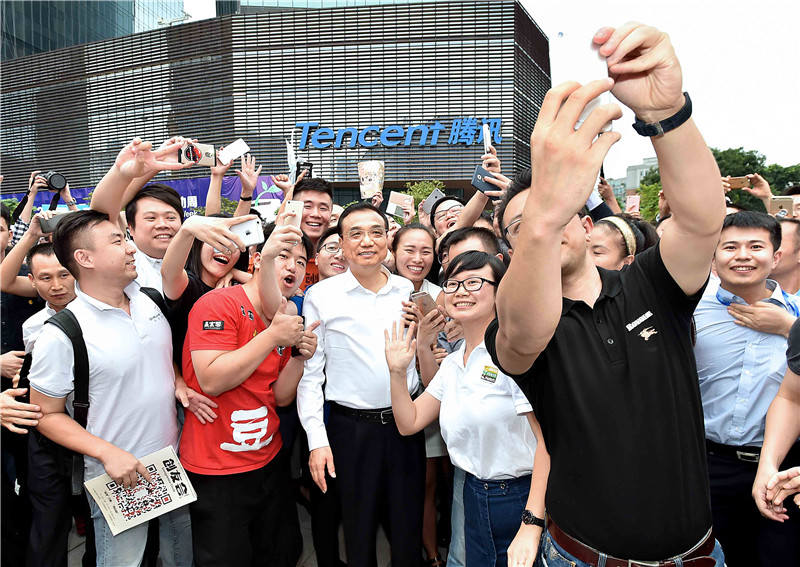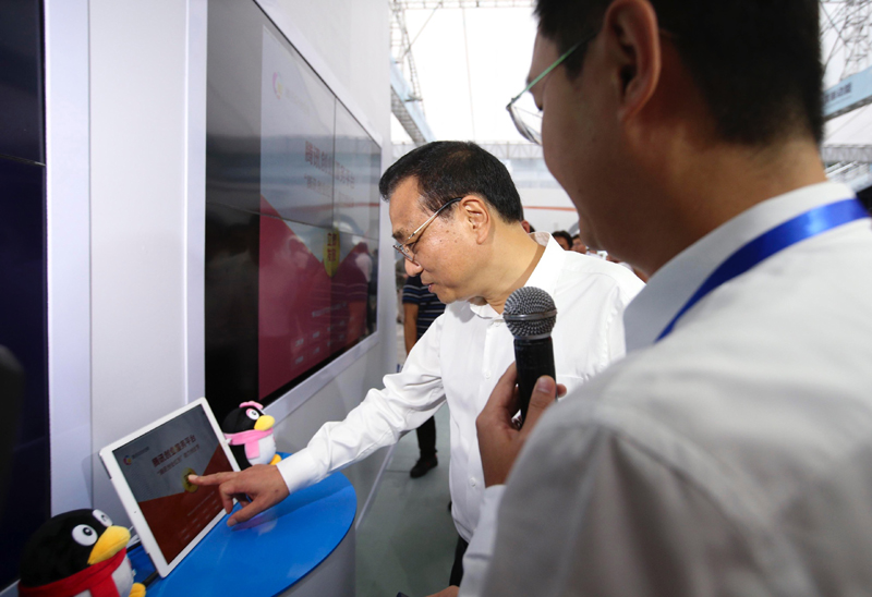 【李克强双创周上为创业者“发红包”】李克强总理12日下午在深圳参观2016年全国双创周主题展示时,来到腾讯展台前,应公司创始人马化腾邀请,点击触屏为创业者“发红包”。随后大屏幕上不断显示有人成功领取1000元。这种红包共计100万个,可用于购买商标注册、社保代缴等企业服务,助力扶持创业创新。