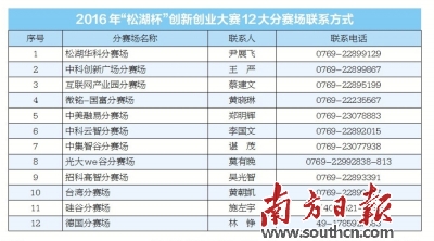 按照计划,大赛将设有12个分赛场,除了9个园区分赛场外,大赛组委会依托东莞台湾青年创新创业服务中心、东莞深圳清华大学研究院创新中心、中欧高层次人才交流中心为承办单位,首次设立了台湾、硅谷、德国三大境外分赛场。