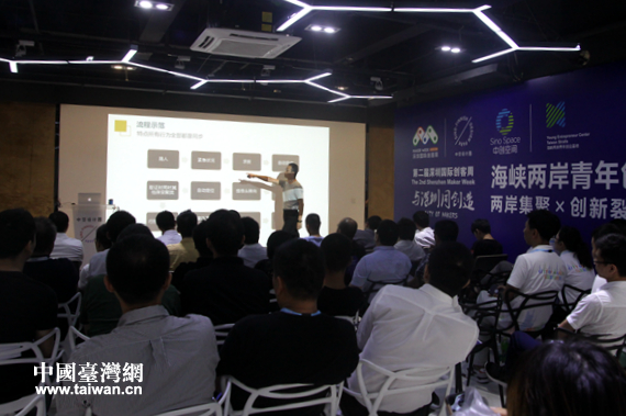 “海峡两岸创客创业路演大会”中,项目代表进行路演。(中国台湾网 陈文韬 摄)