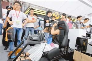 现场展示的一款自主研发虚拟头盔吸引市民眼球。该产品只需一个U盘就可随意下载,即下即玩,让体验者无限制地观察三维空间内的事物。