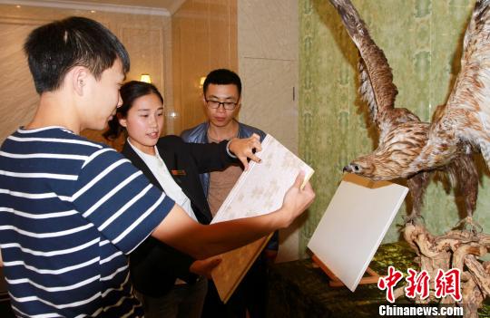 图为王晓静给顾客介绍环保材料。 钟欣 摄