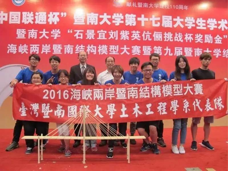 台湾暨南大学代表队参加“2016海峡两岸暨南结构模型大赛”时留影。