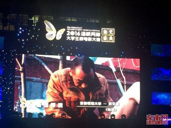 来自上海戏剧学院的韩嘉文的作品<星光照相馆>夺得最佳导演奖;中国传媒大学南广学院的傅艺超的<岗派公路>获得最具创意奖;闽南师范大学苏炳蔚的<下一站,闽南师范大学>获得最佳广告奖;北京电影学院傅博的<黑面>获得最佳微电影奖;闽南师范大学陈仁钦的<向阳花开>等5部作品获得最佳公益微电影奖。