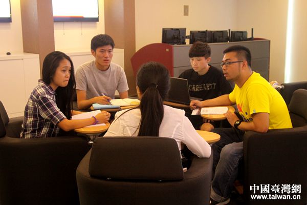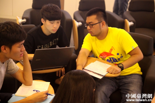 台湾大学实习生在进行小组讨论(中国台湾网 陈文韬 摄)