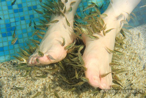 鱼疗,是足部护理的一种新型模式,在温水池中引入土耳其的温泉鱼,以此吸食人体的新陈代谢的死皮,并把人体表皮毛孔的垃圾和细菌吃掉,进而起到养生的作用。