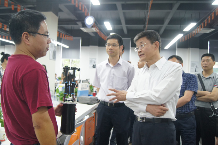 5月10日下午,国台办交流局黄文涛局长一行,来到一品创客 海峡两岸无人机暨智能机器人孵化基地参观调研。黄文涛局长一行听取了孵化基地运营情况介绍,并与唐峰科技、九洲眼航空、控智机器人等创业团队互动交流。