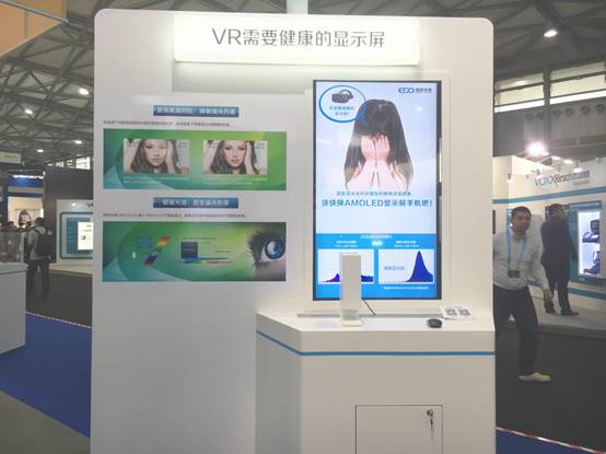 同时,和辉光电向来访者展示了健康护眼显示屏与VR产品的必要联系。健康护眼的AMOLED显示屏与电子产品息息相关。高能蓝光普遍存在于所有的LED/LCD光源设备中,包括日常使用的手机等电子通讯设备,也包括当下正热的VR设备。直接暴露在高能蓝光之下的人眼会受到不同程度的损伤。和辉光电一如既往地关注AMOLED显示屏产品的健康领域,并在现场设置了蓝光光谱测试仪供来访者测试及体验,旨在提高用户对于健康护眼的关注度。