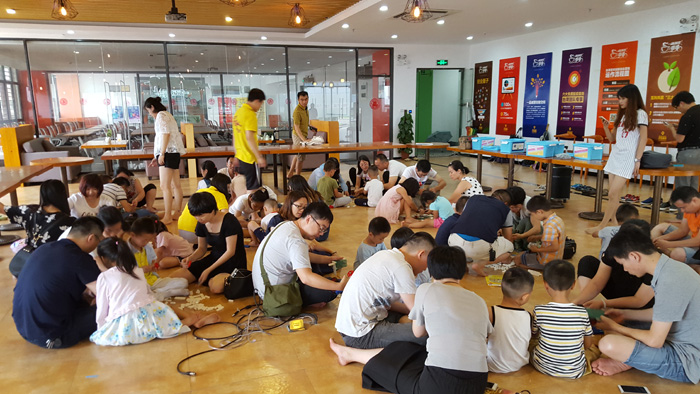 6月5日下午,一品创客集孵化美基地与小玩伴机器人创客空间联合举行了“亲子科技周·亲子游乐大比拼”活动。虽然天公不作美,下起了大雨,但是依旧挡不住家长和小朋友们的热情,现场人气爆棚。大、小朋友在咖啡厅进行了一场场科技大比拼。