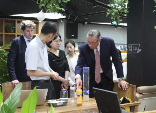 随后,来访一行参观了街区入驻机构可可豆创新孵化平台,体验智能硬件产品,并与创业者进行项目交流,了解其产品的技术工艺、发展情况及未来目标。在创业会客厅,来访一行了解到中关村创业大街为创业者提供的全方位公共服务,线上线下相结合,为创业者提供高效、便捷的服务。
