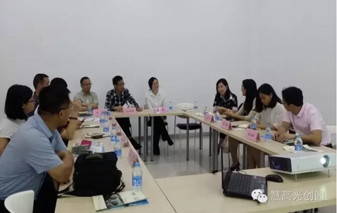 参观完毕,双方开展了交流座谈会,慧高·光创园行政总监潘兰英女士为参访团做园区介绍和工作汇报,然后双方围绕园区经营模式、台青创业情况、政府如何扶持园区发展、政府政策如何对接企业等进行深入交流。