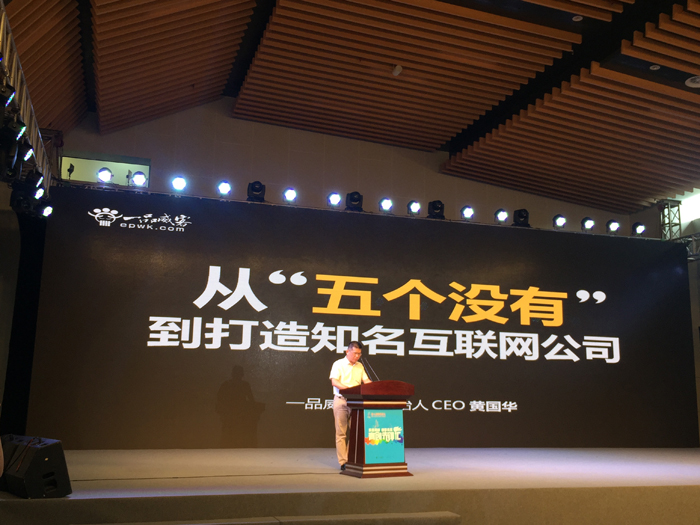 在青创先锋论坛上,一品威客网创始人、CEO黄国华作为厦门创业者代表,做了主题为《从“五个没有”到知名互联网公司》的演讲,分享了一品威客五年多来的创新创业的点滴故事和心路历程。以下为演讲实录:从“五个没有”到打造知名互联网公司