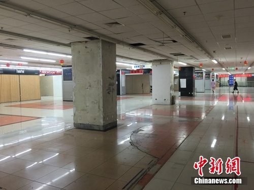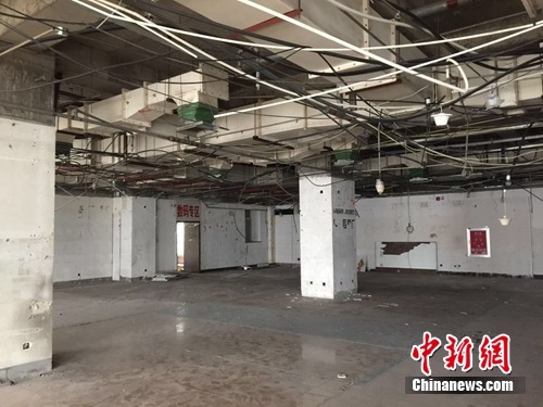 海龙电子城内3楼什么都没有了,部分地区露出水泥墙面。中新网吴涛 摄