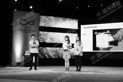 两岸青年创客工作坊成果交流汇报会上,学生们上台介绍团队设计的作品。