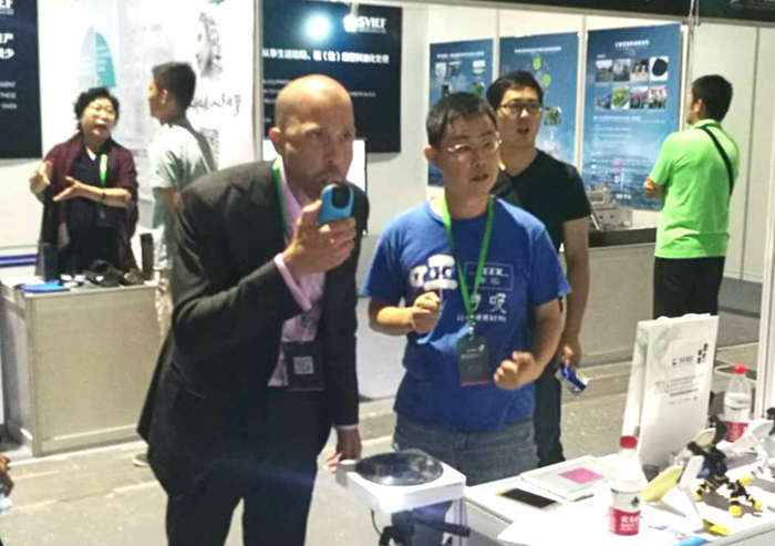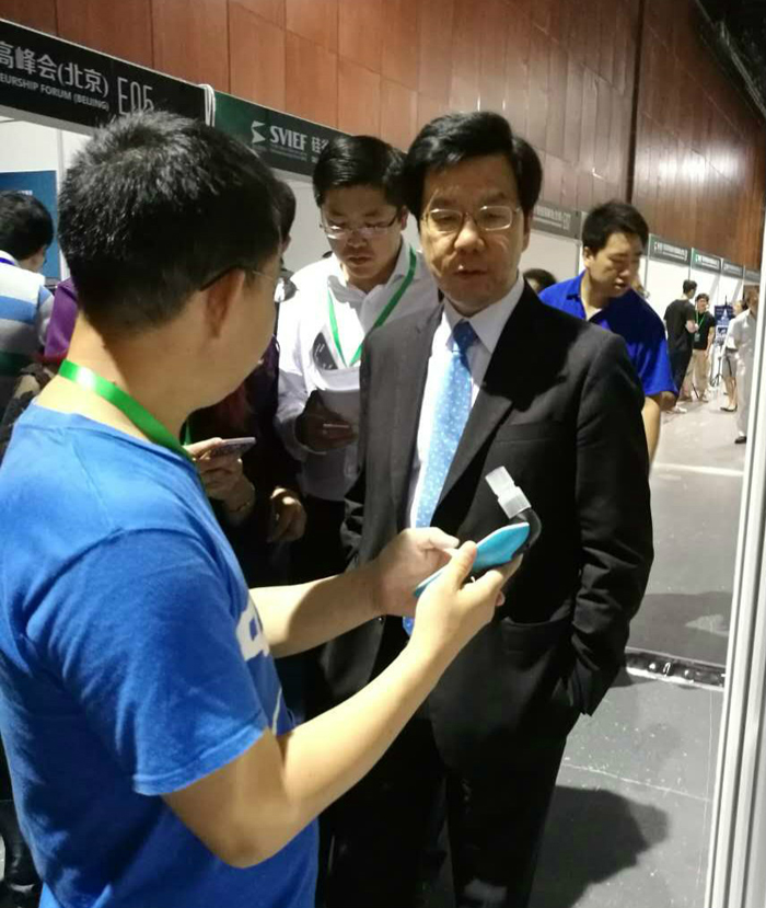 活动当天,创新工场董事长兼首席执行官李开复博士走到赛客团队展台前,了解这款智能呼吸训练器。赛客创始人何明军向李开复博士介绍了智能呼吸训练器的主要功能、使用方法等,获得了认可。此外,英特尔高管、众多投资人、媒体记者等,也纷纷来到赛客展台前,了解设备,现场体验智能呼吸训练器。